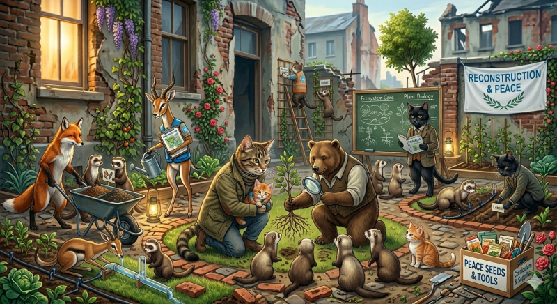 With peace restored, people everywhere are rebuilding the environment—replanting, renewing the land, and helping vegetation flourish again.