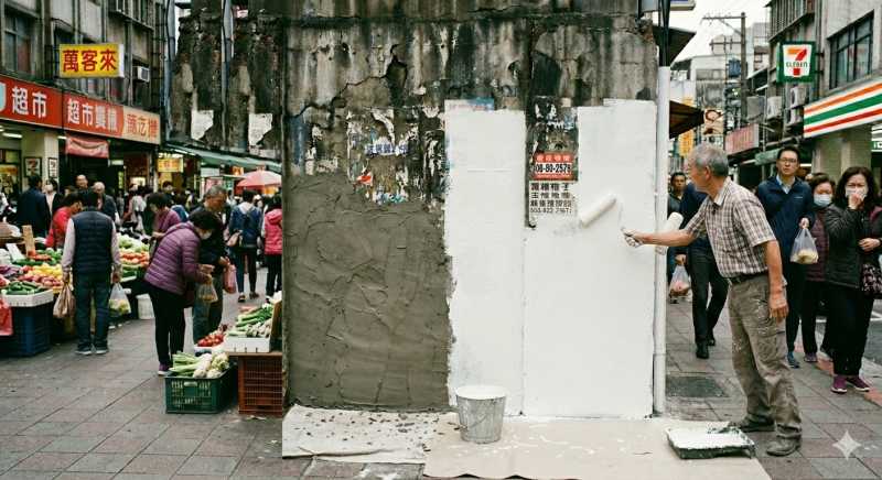 有一位退休的建築工人老林,每天都會經過這面牆去買報紙。有一天,他沒像往常一樣走開,而是回家提了一桶水泥和一把抹刀。他花了兩個小時,把牆上那個最深的裂縫補平了。路人經過時好奇地看著他,有人低聲說:「補那一點有什麼用?整面牆還是醜啊。」但老林只是笑笑,隔天,他帶了幾罐家裡剩餘的白色油漆,把補好的那一塊刷白了。